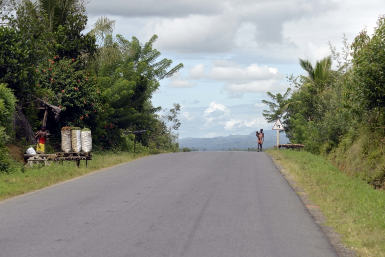 La Route Goudronnee Delabrees Menant Hors De La Ville De Morondava Sur La Cote Sud Ouest De Madagascar Photo Stock Alamy